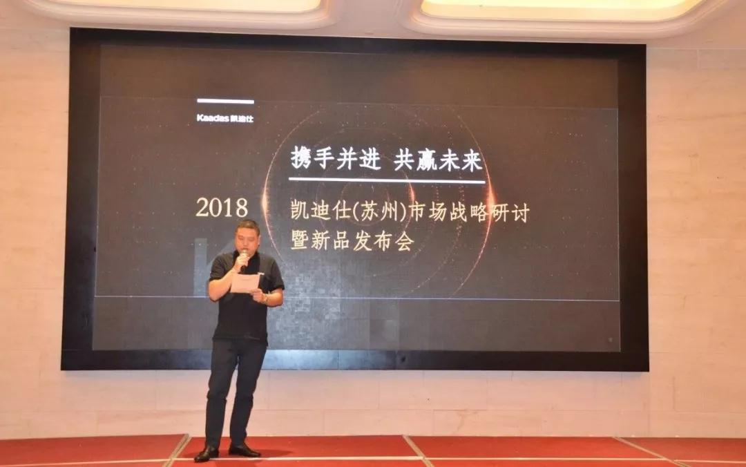 會議于下午14:00正式開始,蘇州凱迪仕陳總首先發表了歡迎致辭,對與會來賓表示熱烈的歡迎,對一直以來支持凱迪仕的各位合作伙伴表示由衷的感謝。在致辭中,陳總對2018年上半年蘇州凱迪仕的表現進行了總結,并對智能鎖行業形勢做了簡要的分析,闡述了對未來的展望和期待。
