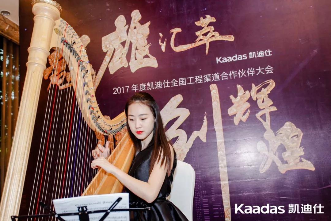 11日早上,伴隨著優雅的豎琴現場演奏音樂,合作伙伴們陸續抵達會場簽到,并在展示凱迪仕風采的背景墻前合影留念。在振奮人心的開場表演之后,凱迪仕全國工程渠道合作伙伴大會正式開始。
