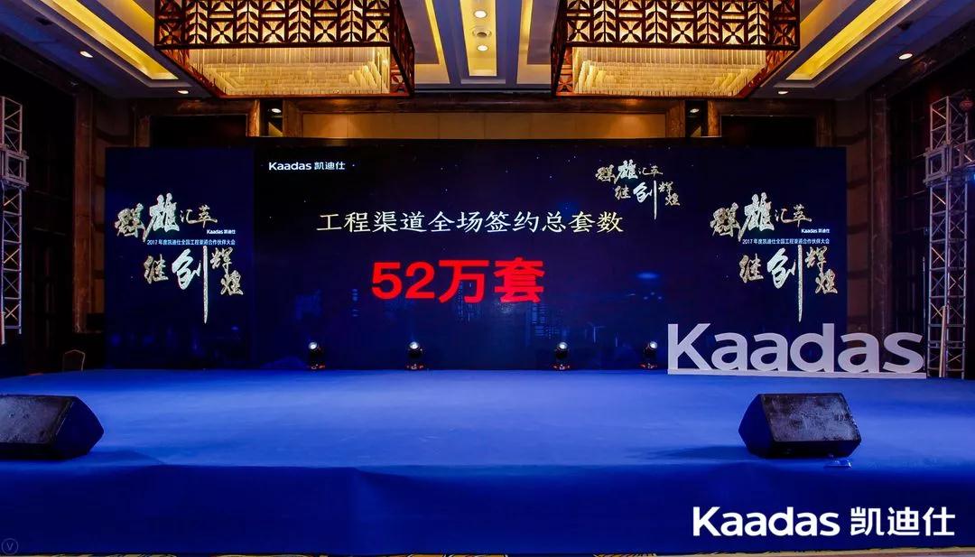 在簽約環節,現場宣布了簽約政策,合作伙伴們紛紛上臺簽約,不斷有大額訂單在屏幕上一一展現,最終全場總訂單額達到52萬套,是凱迪仕工程渠道發展過程中一個里程碑式的數字,也展現了凱迪仕的非凡實力。