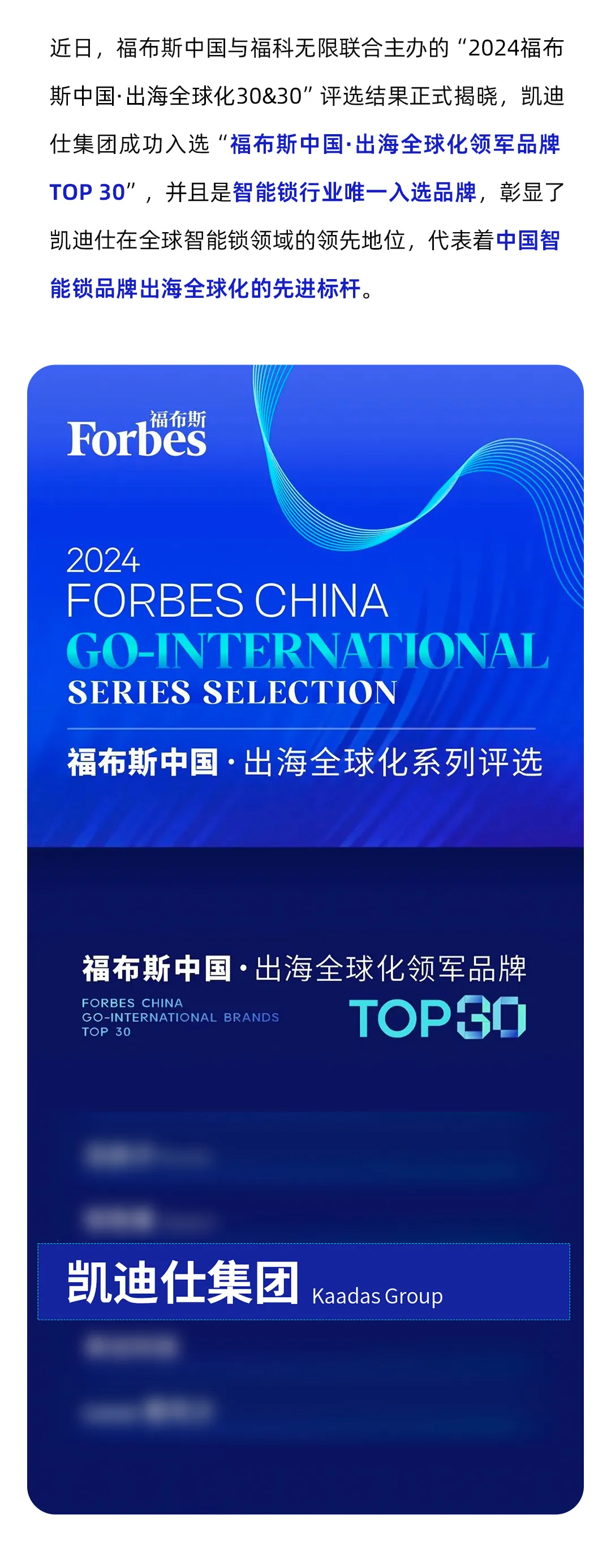 智能鎖全球典范!凱迪仕榮膺2024福布斯中國·出海全球化領(lǐng)軍品牌TOP30